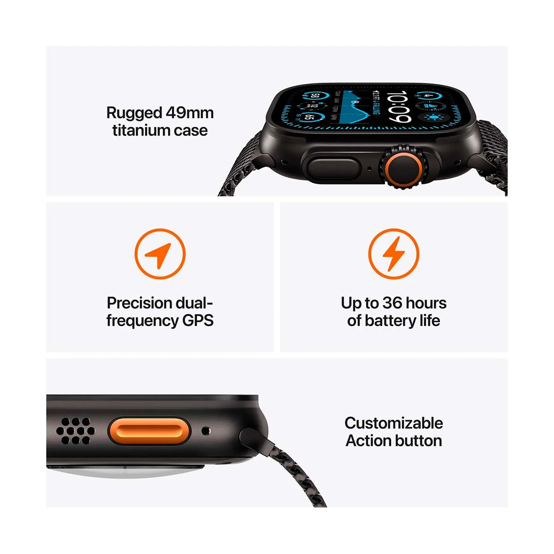 - Water Resistance: 10 ATM / 100 meters