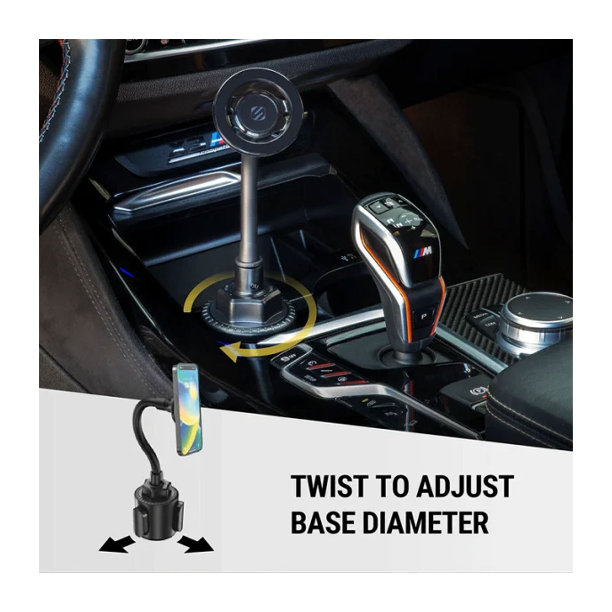 - Adjustable Base: Simply twist to adjust the diameter of the base, ensuring a snug fit in your vehicle’s cup holder.
